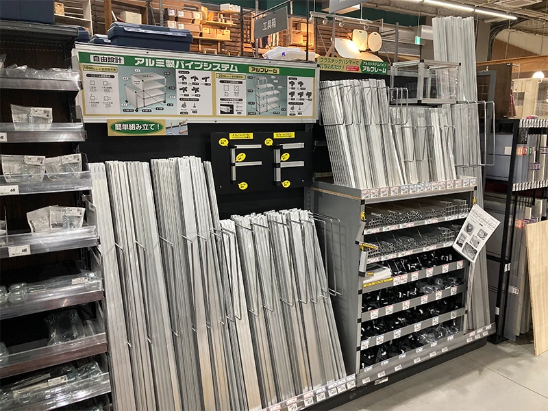 全国の取り扱いのあるホームセンターでアルフレーム、ジョイント各種をご購入いただけます。